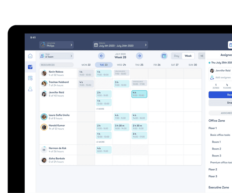 CleanOnn: Plan allows you to create the planning for your teams on location or make ad-hoc changes.